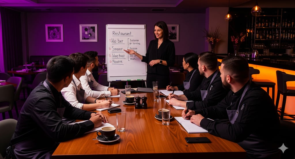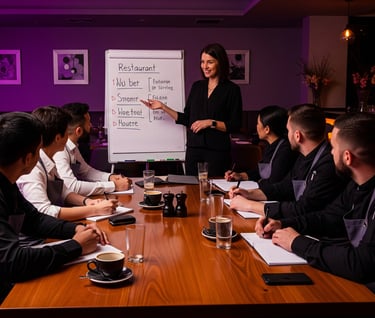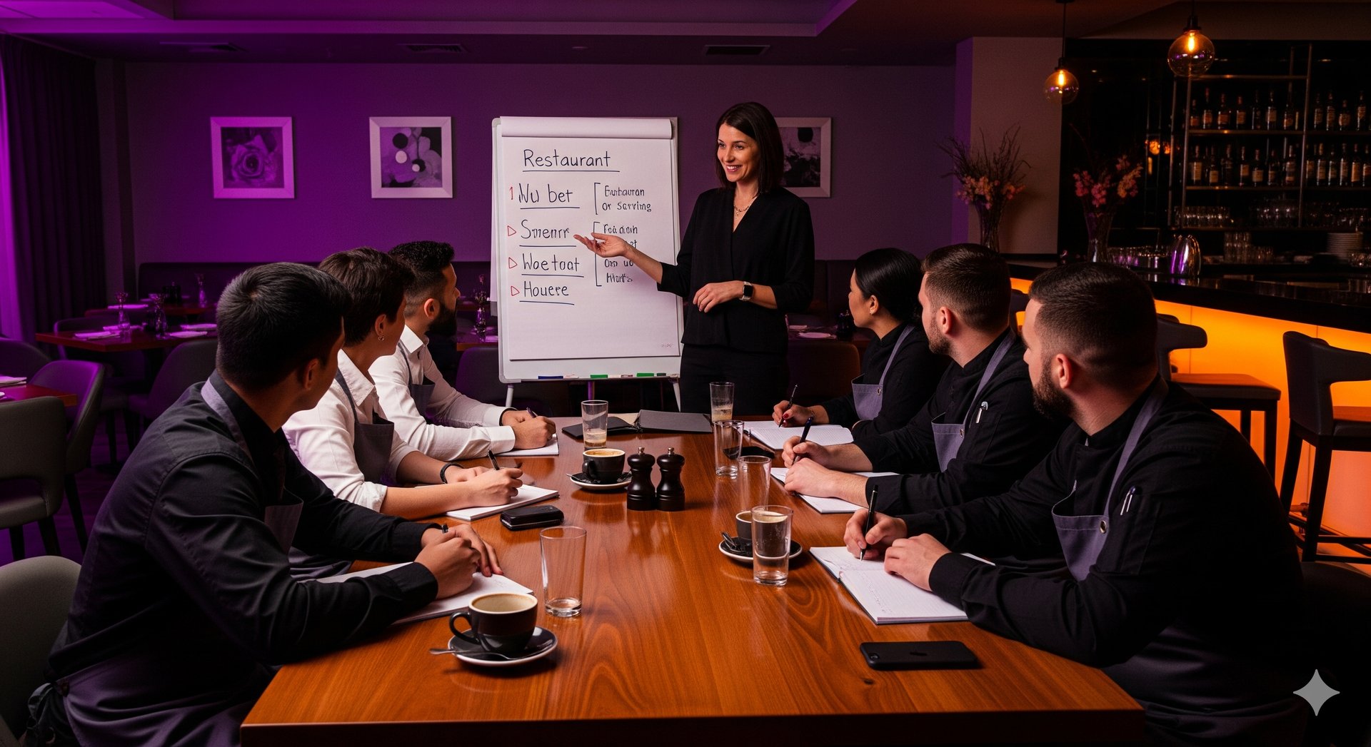 ✅ Aulas 100% práticas e no próprio restaurante, focadas em diálogos reais de atendimento e hospitalidade